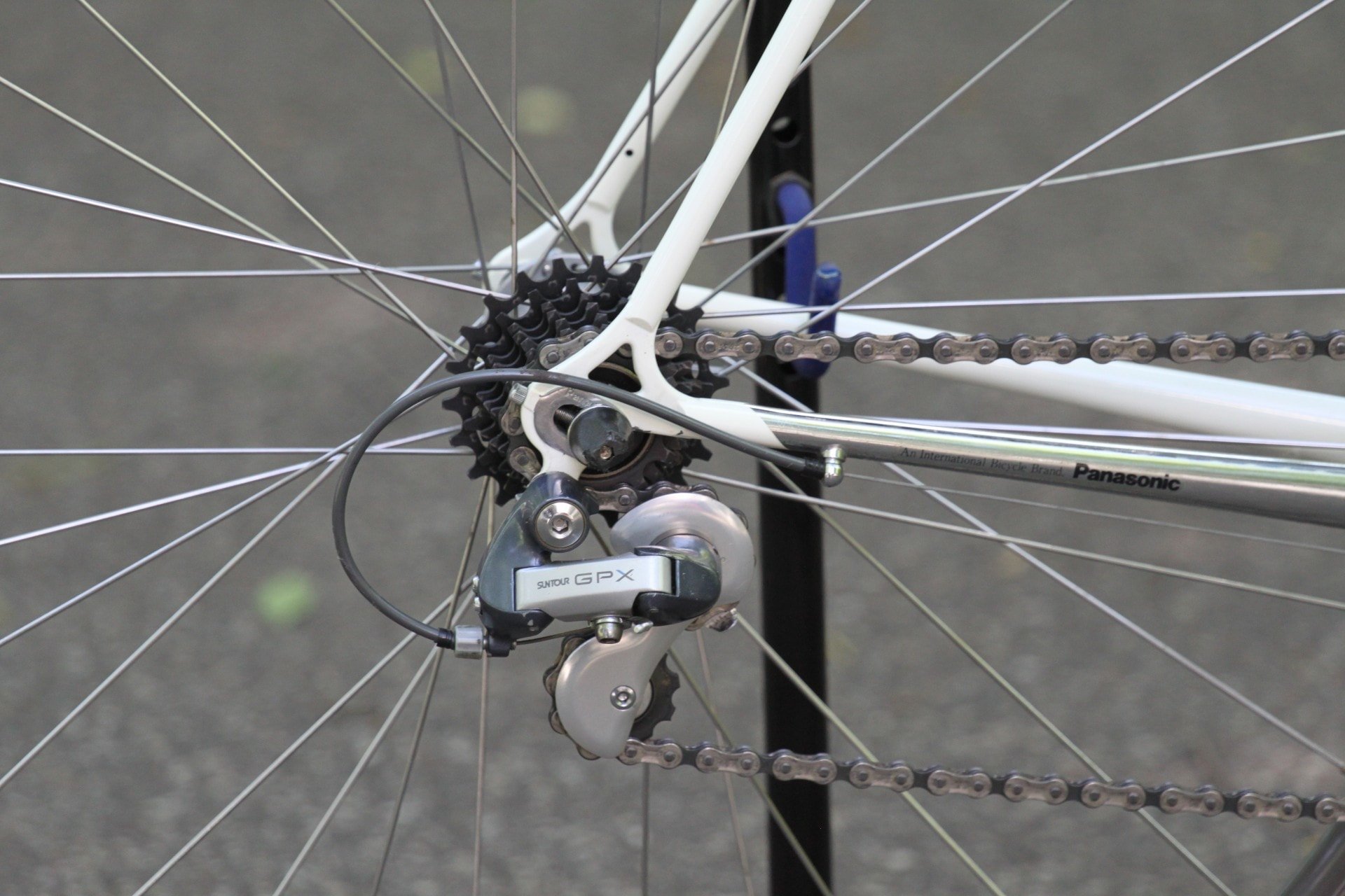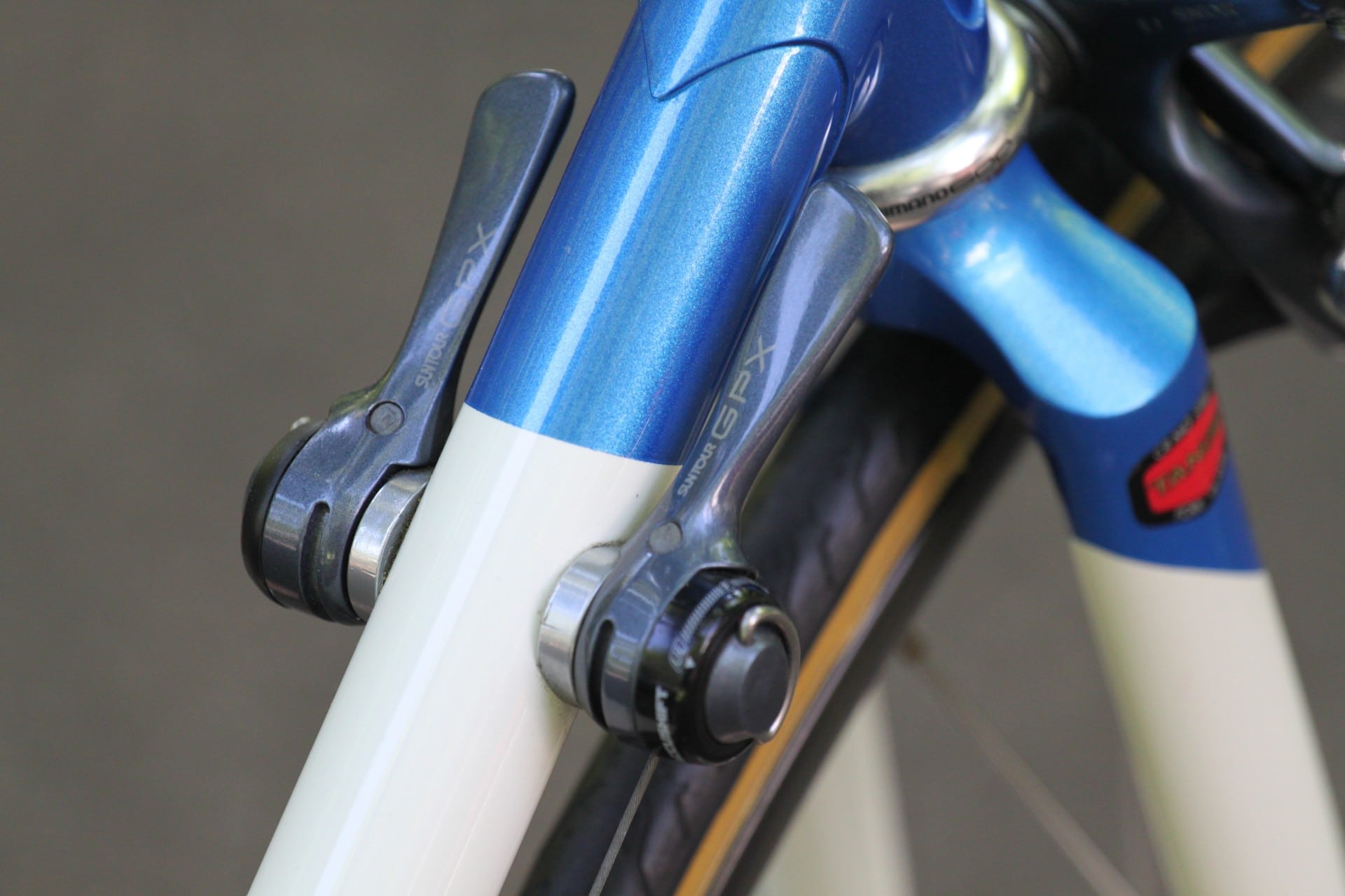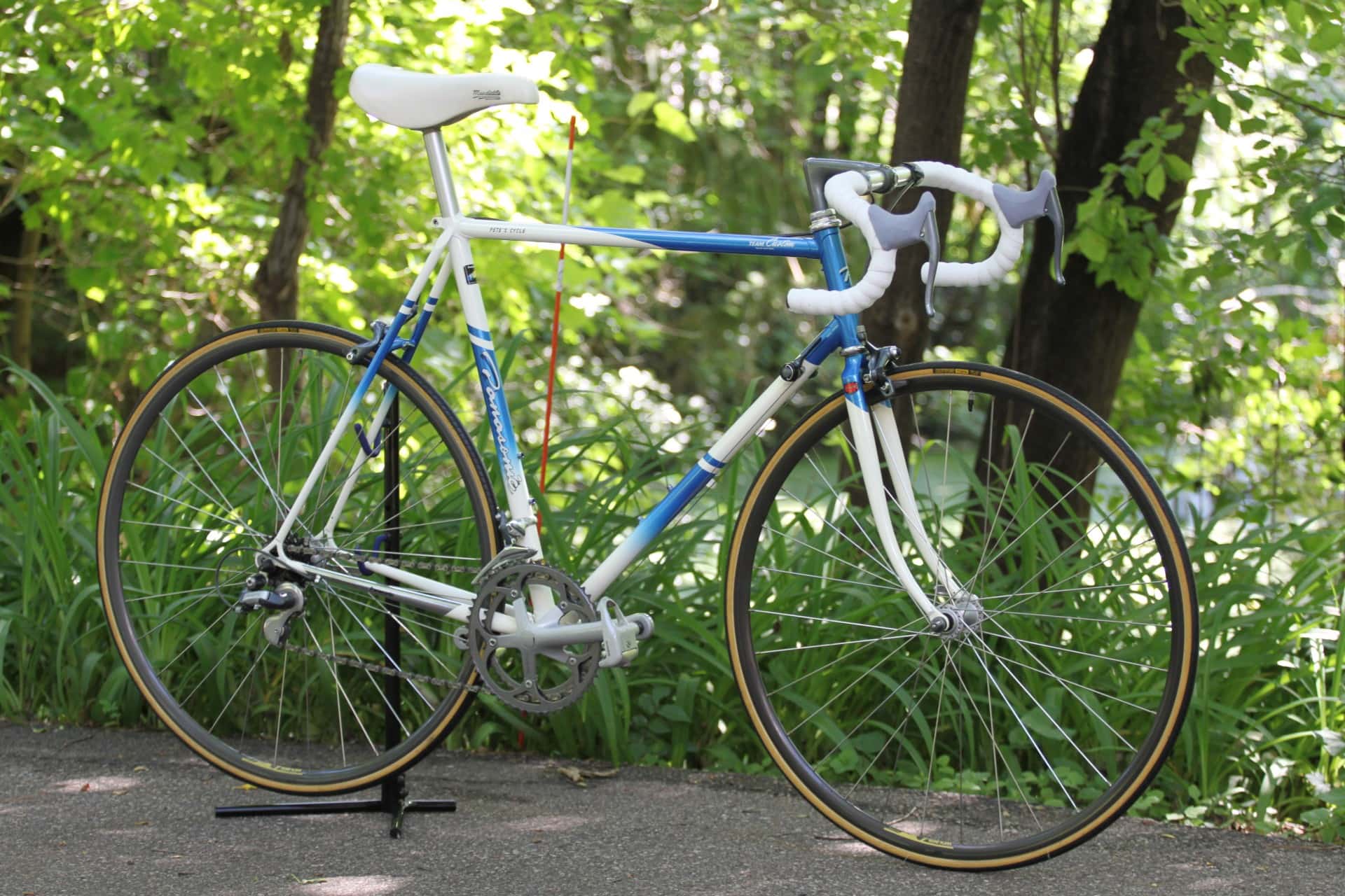 The featured bike that you see here comes to us via the original owner (Chuck) in Maryland, USA. The bike features a custom PICS paint scheme in Sonic Blue and White and a nearly complete Suntour GPX build.