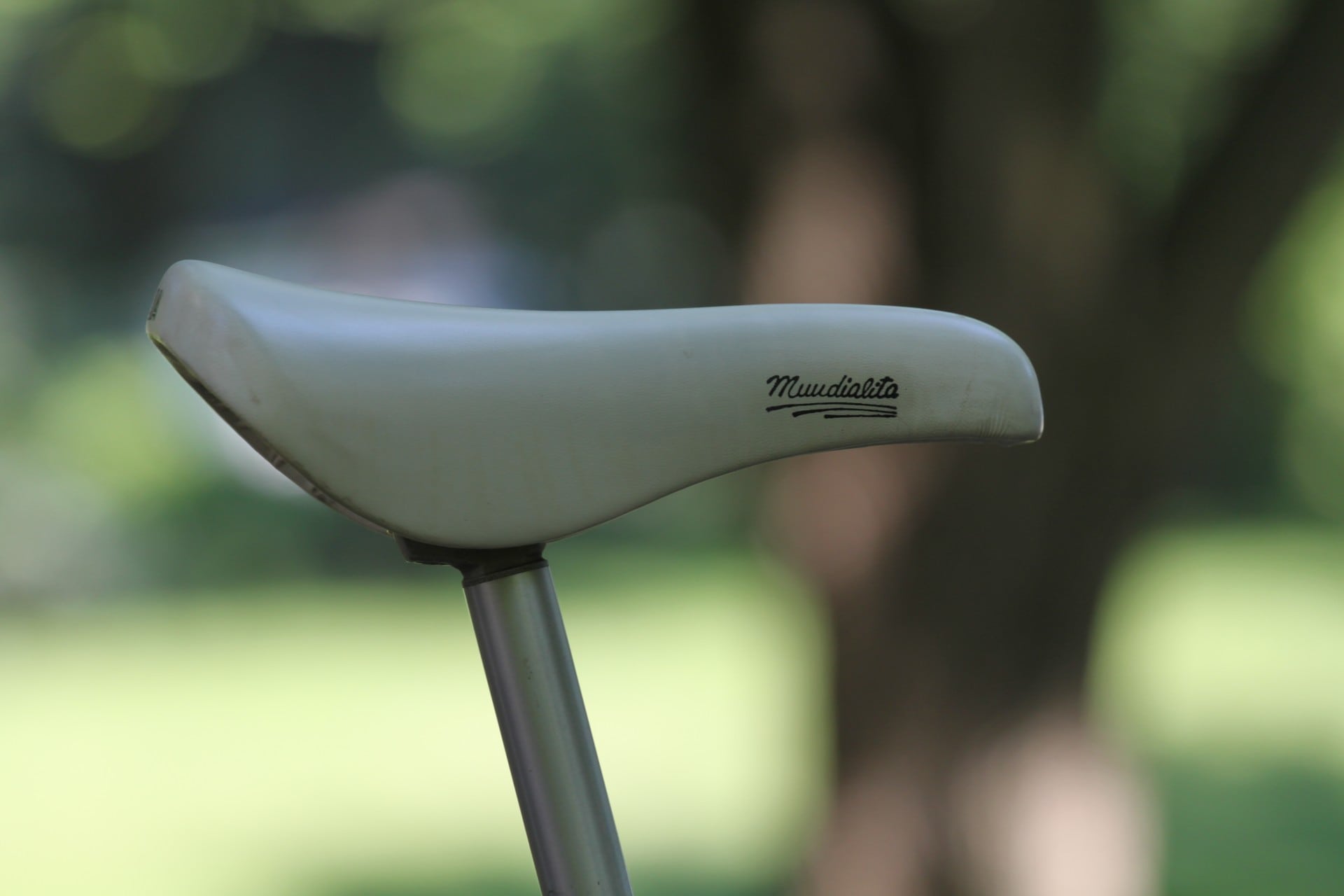 - Saddle:Â Selle Italia Mundalita, white vinyl leatherette with Strong alloy seat post