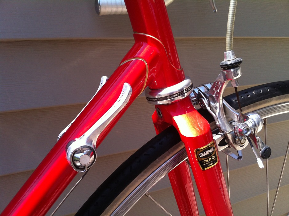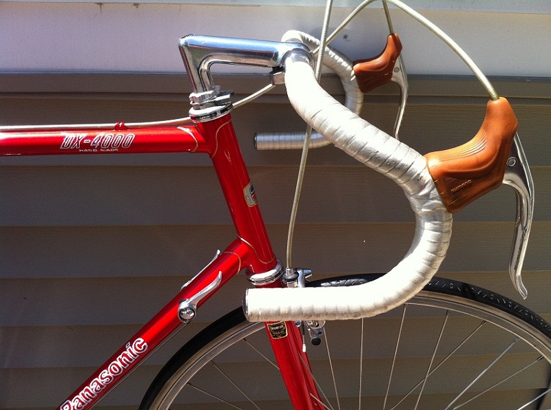 - Shimano 600 EX alloy side-pull with tire guide and gum hooded drilled levers