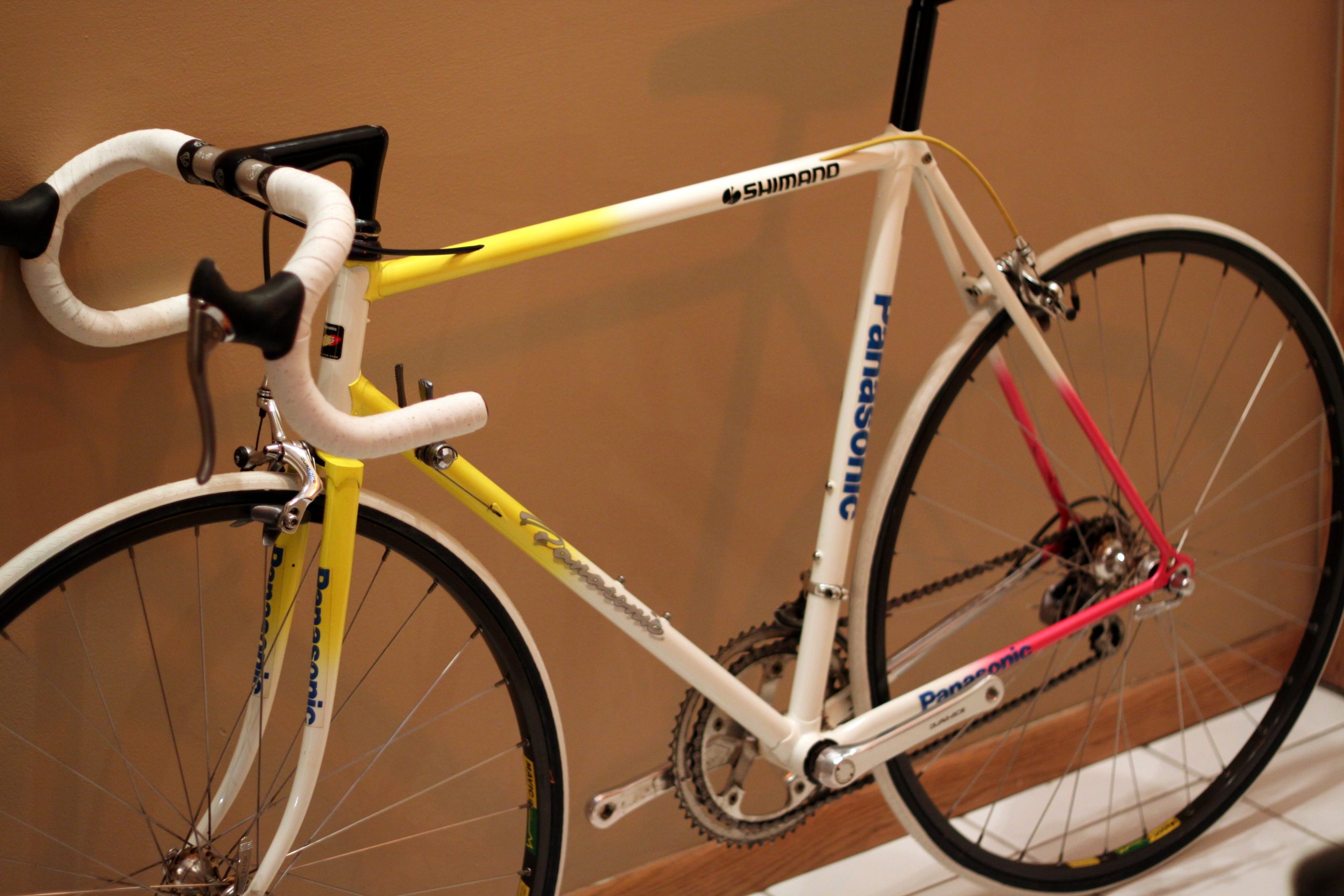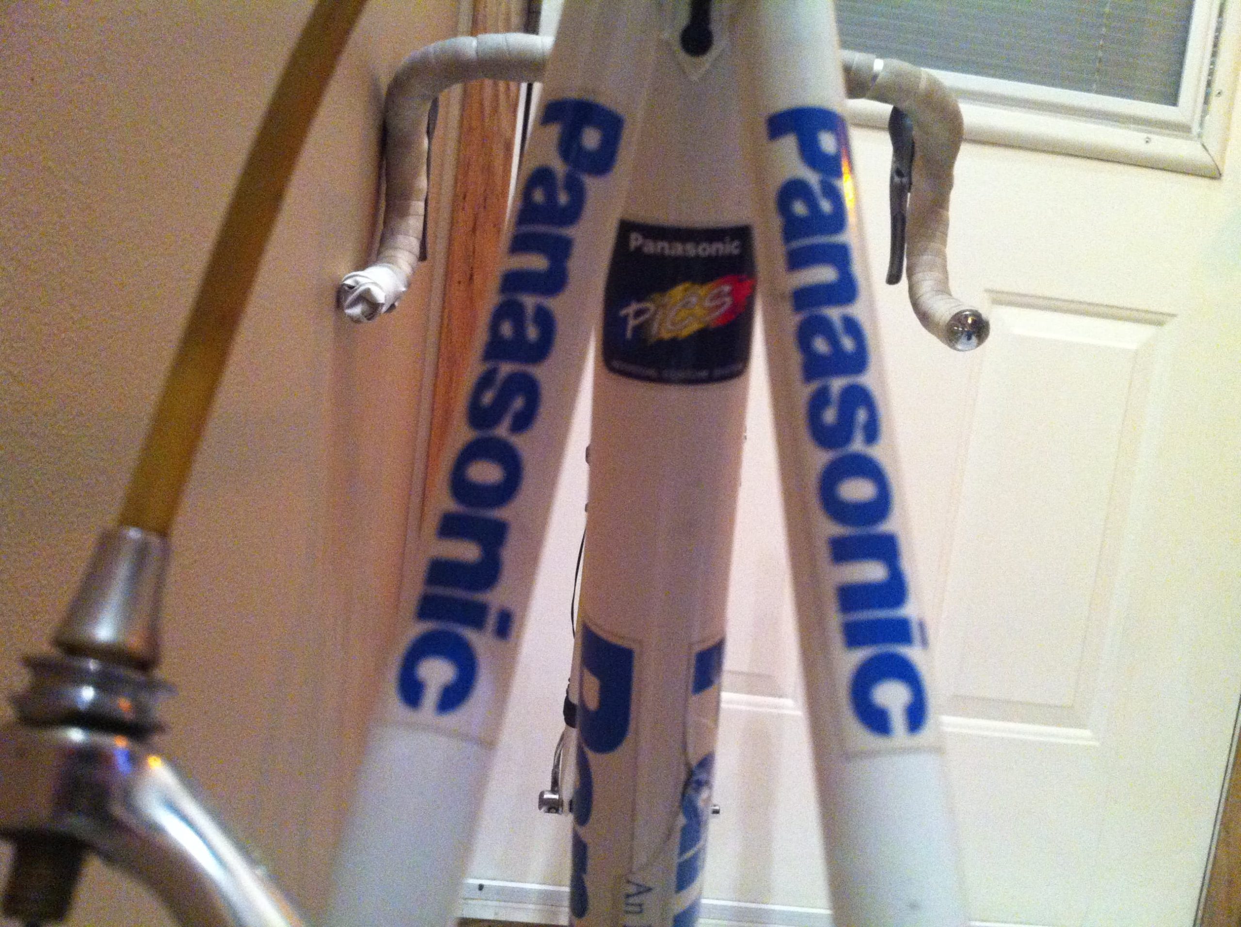 Over the years more than a few professional cyclists have ridden Panasonic bicycles. Panasonic DID have a professional cycling team for a while so that would naturally account for their bicycles being ridden by pro cyclists.
