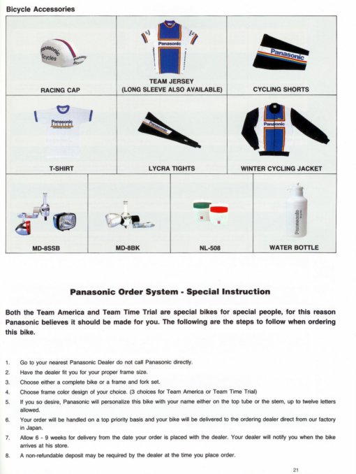 1988 Panasonic Bicycles catalog for the U.S. market. Special thanks to Jeffrey Miller for providing us with his catalog for scanning.
